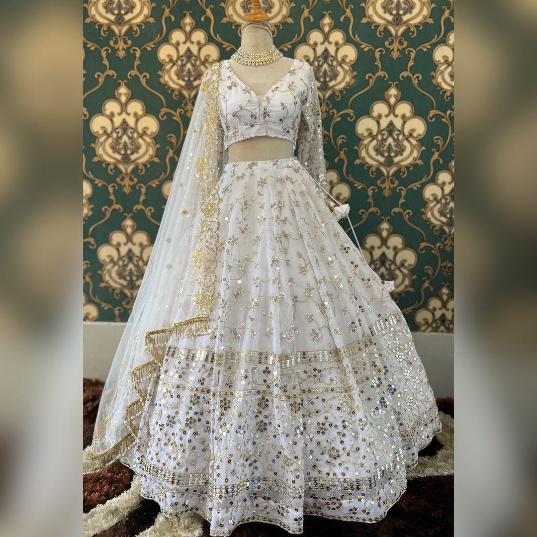 The lengha fabric in gorget with thread work elegant and easy to carry